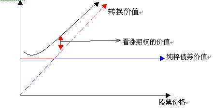 另一是转换权的价值。转换权之所以有价值,是因为当股价上涨时,债权人可按原定转换比率转换成股票,从而获得股票增值的惠益。