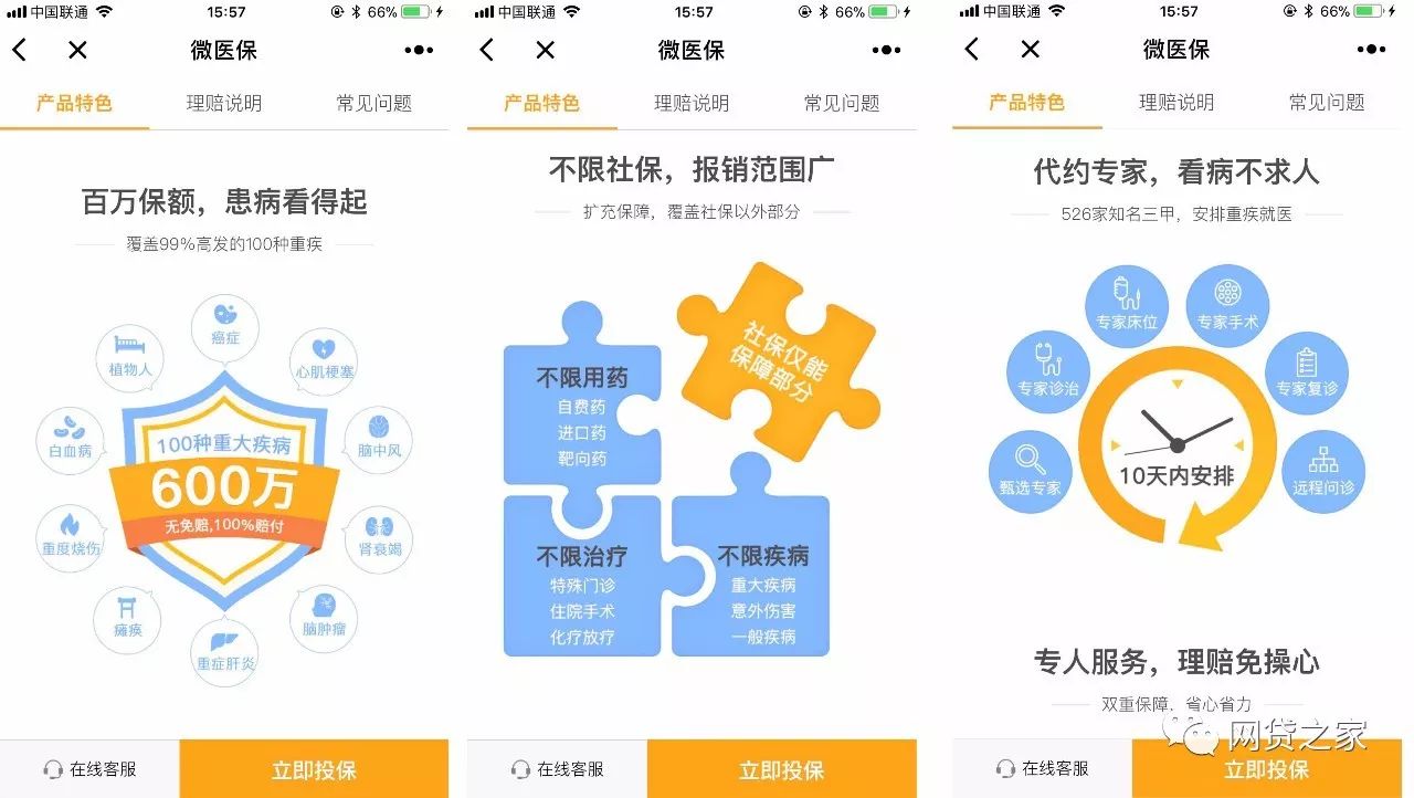 老佛爷把这话理解成小马哥不想走寻常路(保险超市的运营模式,支付宝、京东、百度目前的玩法),这种差异化竞争的打法,的确符合小马哥以及其掌舵的腾讯帝国秉承的“产品思维”。下面从老佛爷截图的“微医保”产品特色就可见一斑。